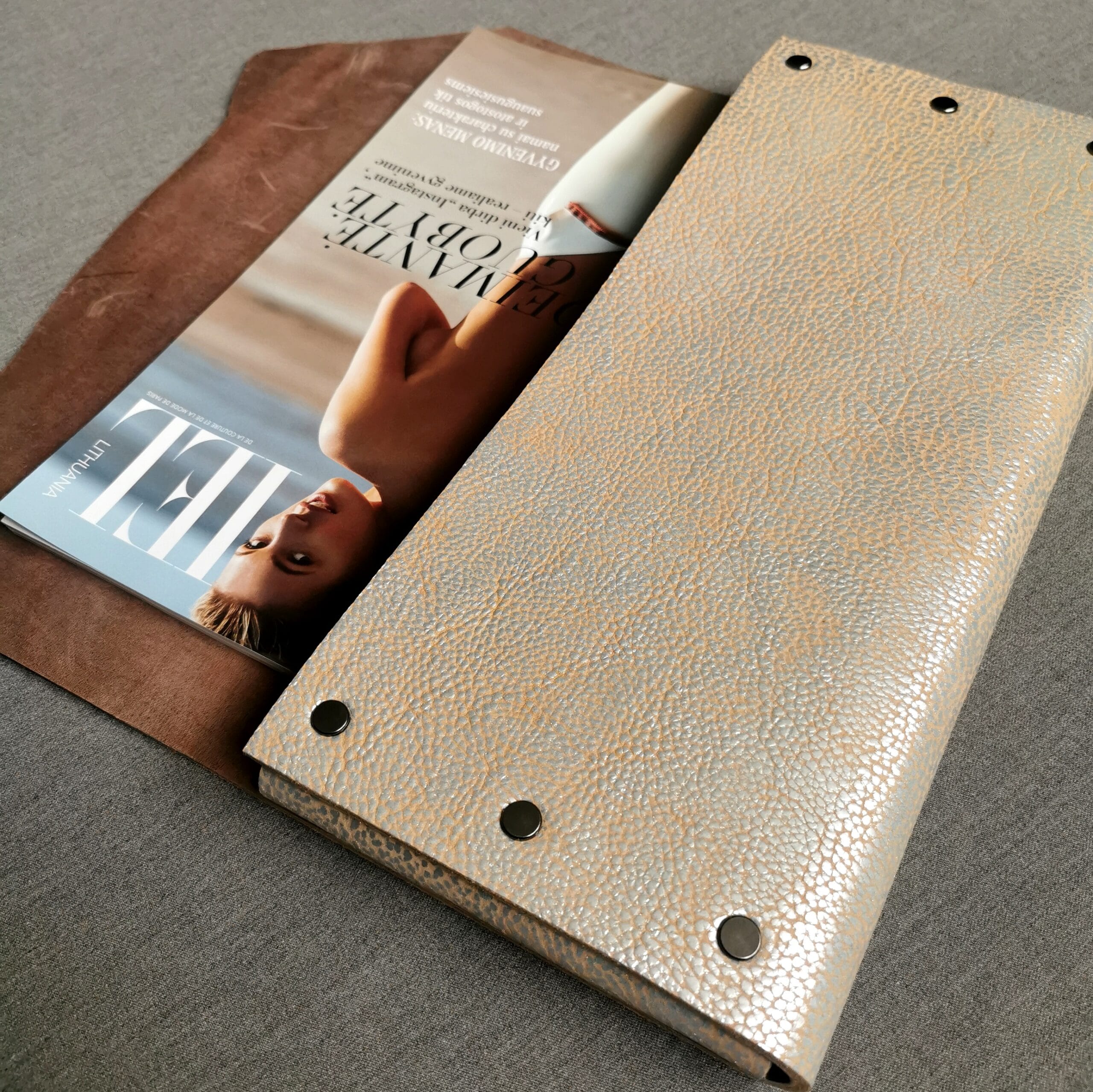 Išorė – natūrali  blizganti oda su sendinimo efektu, vidus  – natūrali ruda oda.